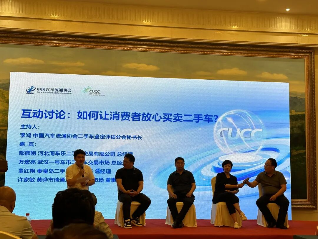 随后的互动环节,由协会二手车鉴定评估分会秘书长李鸿主持,河北淘车乐二手车交易有限公司总经理郜彦刚、武汉一号车市二手车交易市场总经理万宏亮、秦皇岛二手车交易市场总经理董红艳、黄骅市瑞通二手车交易市场董事长许家敏共同参与,围绕“如何让消费者放心买卖二手车”的话题,展开了精彩的互动。