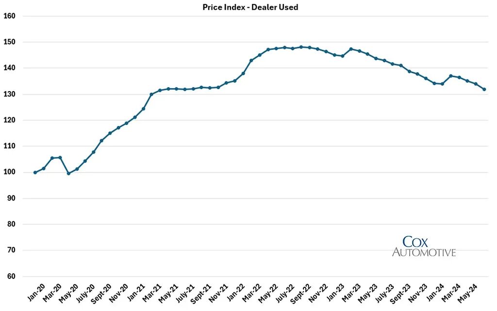 新车价格的大幅上涨为二手车在价格指数上保持高位创造了空间,而新车销量下滑则限制了优质二手车的供应,推高了经销商的销售价格。考克斯数据库中跟踪的二手车库存目前比去年同期高出10.5%,尽管2024年5月至6月期间可用的二手车库存确实下降了2.1%。目前,考克斯经销商数据库中的二手车数量比2022年短缺最严重时期高出约30%。2年以下二手电动汽车和插电式混合动力汽车的供应量同比增长48.4%,而2~4年的二手电动汽车库存同比增长近三倍(增长291.2%)。受中国平价电动汽车的涌入和特斯拉持续降价的推动,上半年轻度使用且车龄未满2年的EV或PHEV平均价格从2023年6月的70,994美元下降至2024年6月的53,058美元,降幅为25.3%。为此,车龄2~4年的二手电动汽车和插电式混合动力汽车的平均RV百分比从12个月前的平均70.9%下降到2024年6月的61.3%。虽然电动汽车仍然拥有最长的平均销售天数(根据车龄和阶段不同,在46天到53天之间),但需要注意的是,可用数据的样本量很小,因此容易出现波动。美瀚的批发量从今年年初至6月底增长了40.3%,其中2024年5月和6月是自2020年中期以来批发量最好的两个月份。乘用车(批发量的33.2%)、SUV(34.5%)和轻型商用车(32.3%)之间的分布几乎均匀。电动汽车和插电式混合动力汽车仅占0.1%。美瀚拍卖会上出售的车辆主要来自车队管理公司、政府和企业车队以及经销商以旧换新。除此之外还有OEM车辆(在封闭式拍卖会上出售给经销商的最新款企业用车)数量有所增长。美瀚价格指数为134.2,同比下降9.1%,自2022年年中以来下降20%。这意味着车队卖家和批发买家应该注意到,拍卖的平均价格在两年内下降了约20%,这对于设定储备和采购预算时很重要。和全球其他市场相比,国内二手车市场显得独树一帜,一是受新冠疫情的影响期比其他地区长;二是新车价格更加不稳定,由此造成了二手车价格的下降,给车商的经营带来了更大的不确定性。