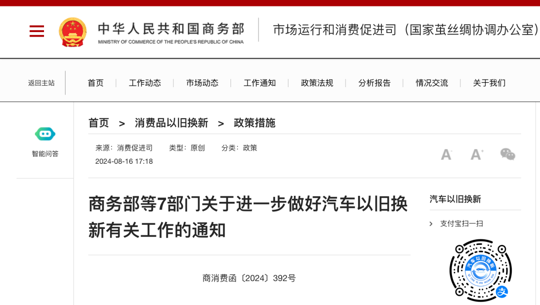 政策动态|商务部等7部门关于进一步做好汽车以旧换新有关工作的通知