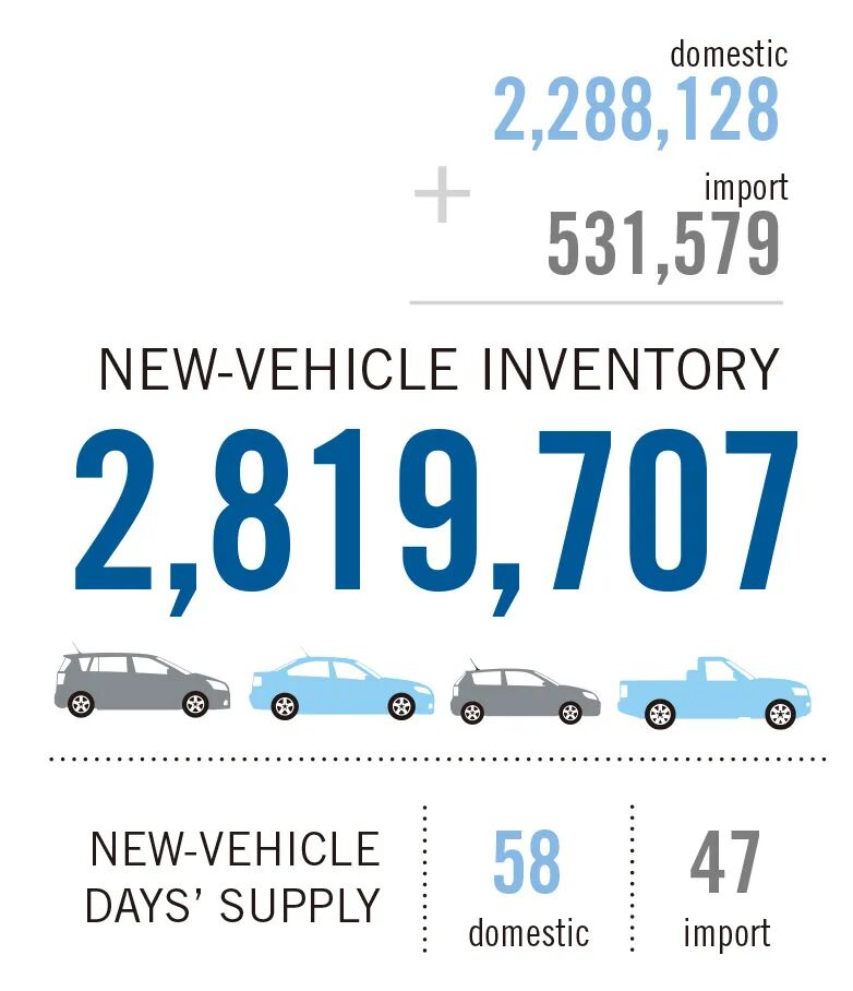 2024年上半年美国新车库存为2,819,707台,其中国内2,288,128台,进口531,579台。