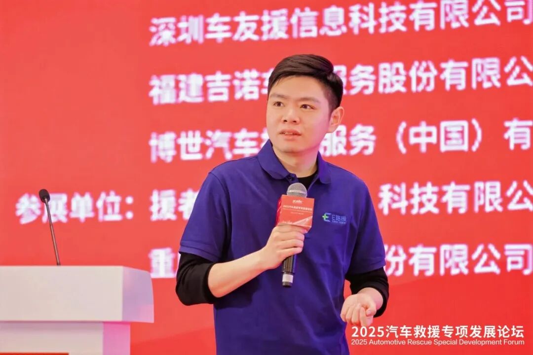 在下午的演讲环节中,博世智能出行售后独立售后市场项目发展总监李德强分享了博世公司的情况及在救援行业的发展计划。博世在 C 端影响力强,产品丰富,其电瓶具有可靠性和稳定性,且有完善质保体系。博世还探讨了救援渠道的发展及市场机会,将为服务商提供整套方案。