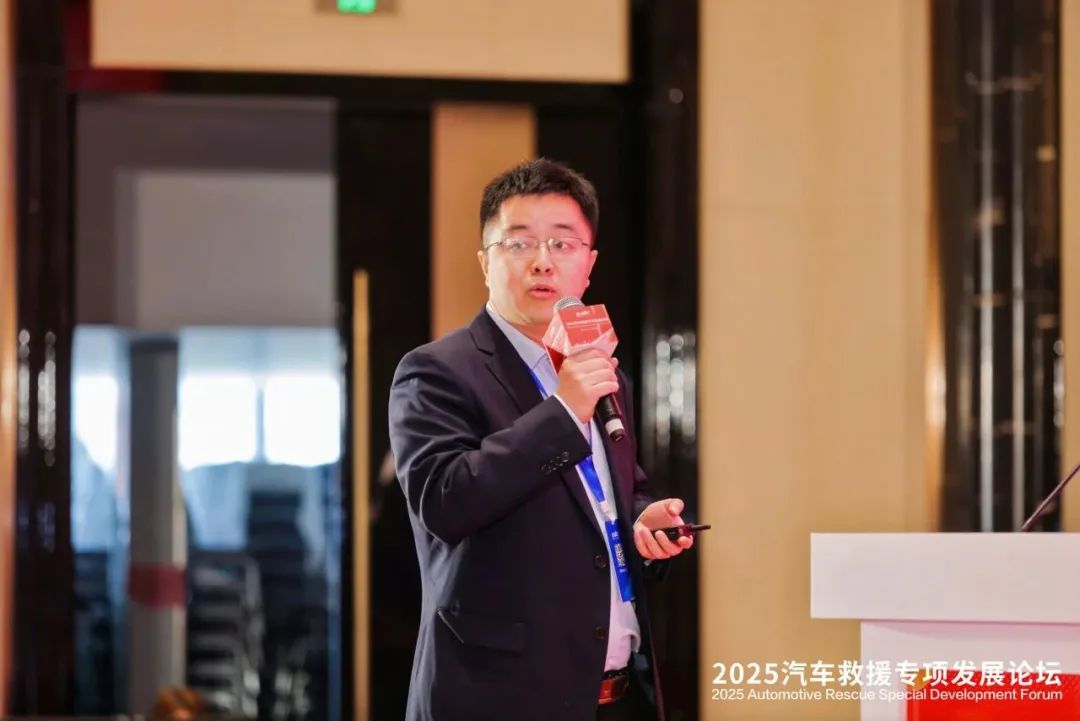 江苏中汽高科股份有限公司产品总监蒋洪斌围绕“新能源救援装备的技术应用”展开讲解。中汽高科作为行业资深企业,拥有 30 多年发展历史,产品涵盖多领域,参与多项行业标准制定。蒋洪斌重点介绍了公司的非事故类救援平板车、事故类救援拖吊车及新能源清障车等产品。其新能源清障车具有智能化人机交互系统、长续航、低成本、多上装选择及 V2V 充电等优势,部分车型在地库救援、续航表现等方面成绩优异,如常奇奥铃、比亚迪等合作车型在不同场景下的出色测试数据,展示了新能源救援装备在行业应用中的广阔前景,为救援企业装备升级提供了有力参考。